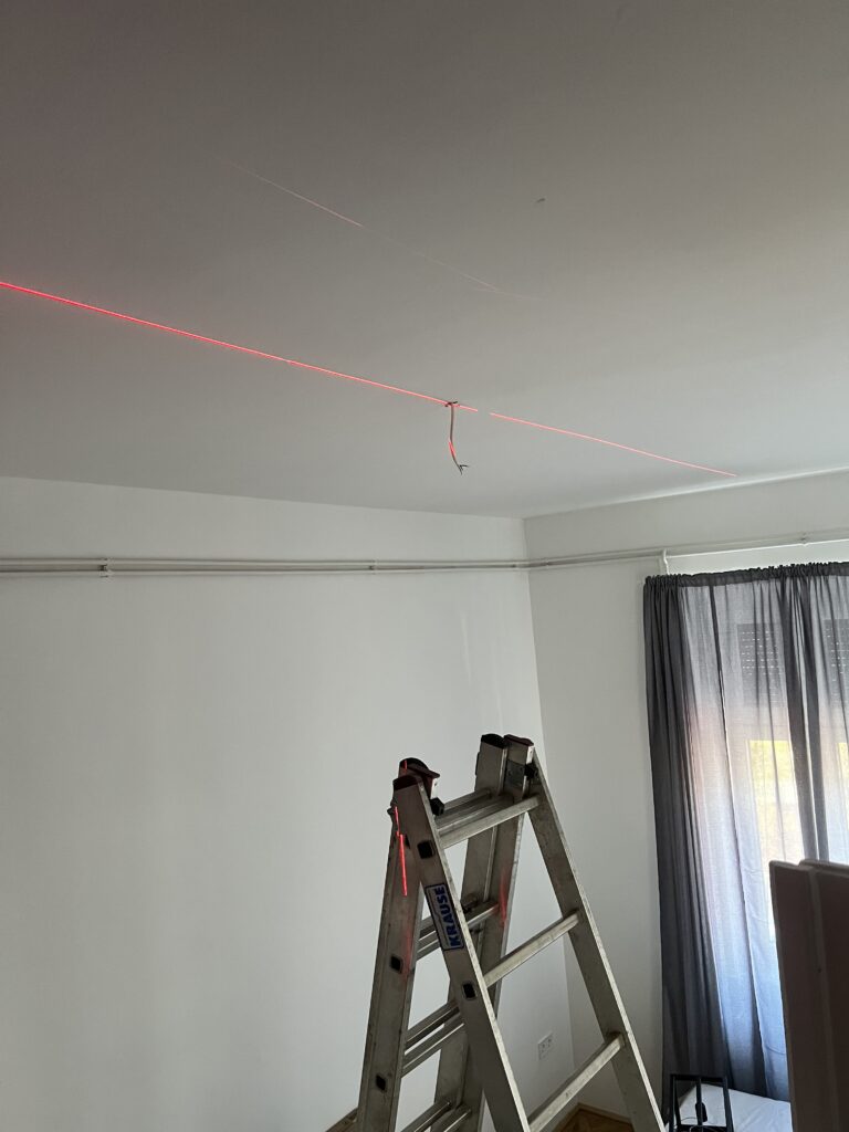Négy méteres belmagasságnál kicsit kellett nyújtózkodni, de felkerültek a lámpák.