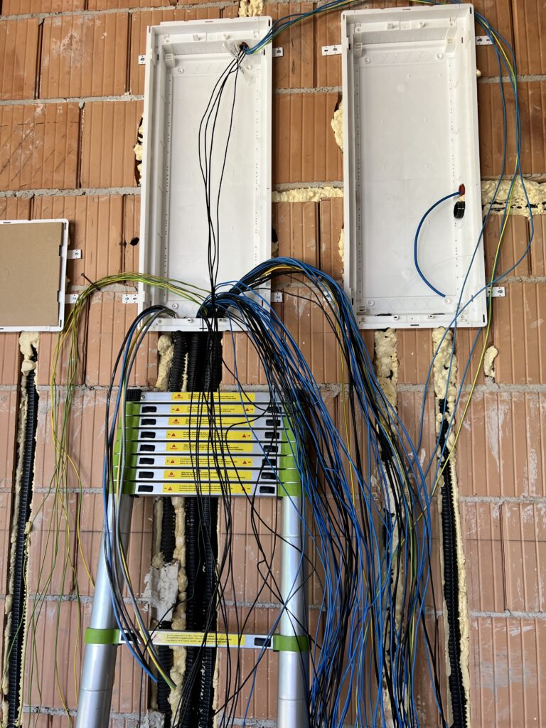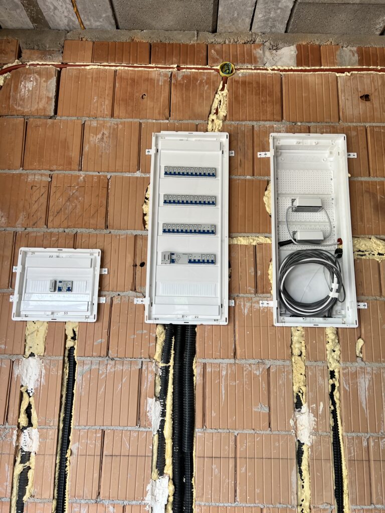 Készül a családi ház elektromos berendezése. Most a kismegszakítók kerültek beépítésre.