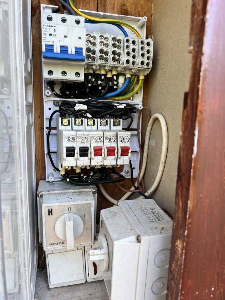 A Balaton környékén is vannak hanyagul kivitelezett villamos berendezések. Az egyiket rendbe tettük. A rendelkezésre álló szűk hely komoly kihívást jelentett a kismegszakítók beépítése során.